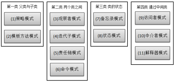 第一类:通过父类与子类的关系进行实现。第二类:两个类之间。第三类:类的状态。第四类:通过中间类
